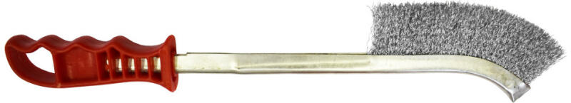 Tisztításhoz, rozsda és festék eltávolításához STD: Hullámosított, közepesen kemény acéldrót INOX: Rozsdamentes, saválló acéldrót MES: Hullámosított sárgaréz drót SPEED kézi kefe, hosszú kivitelben (piros nyéllel) 380/140, 0.30 STD