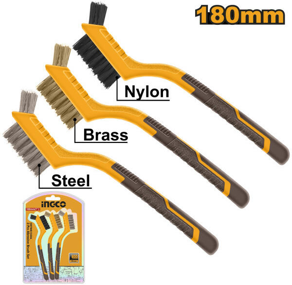 Fém rozsda eltávolításKülönböző anyagok képesek kezelni különböző felületeketMéret: 180 mm (7")Műanyag markolatSörték: műanyag, réz, drótSzűkített vég Szállítási terjedelem: 3 db mini drótkefe, Bliszterben